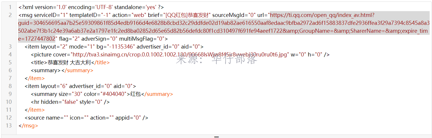这是一个类似微信红包的卡片消息,该消息是一个xml消息,本质上就是一个链接跳转,增加了一个图片和背景显示。点击卡片会出现如下画面,无论是取消还是进入群聊,都会强制加群。