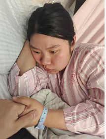 老婆躺在床上,麻药劲还没过,一直发抖,受了不少苦。