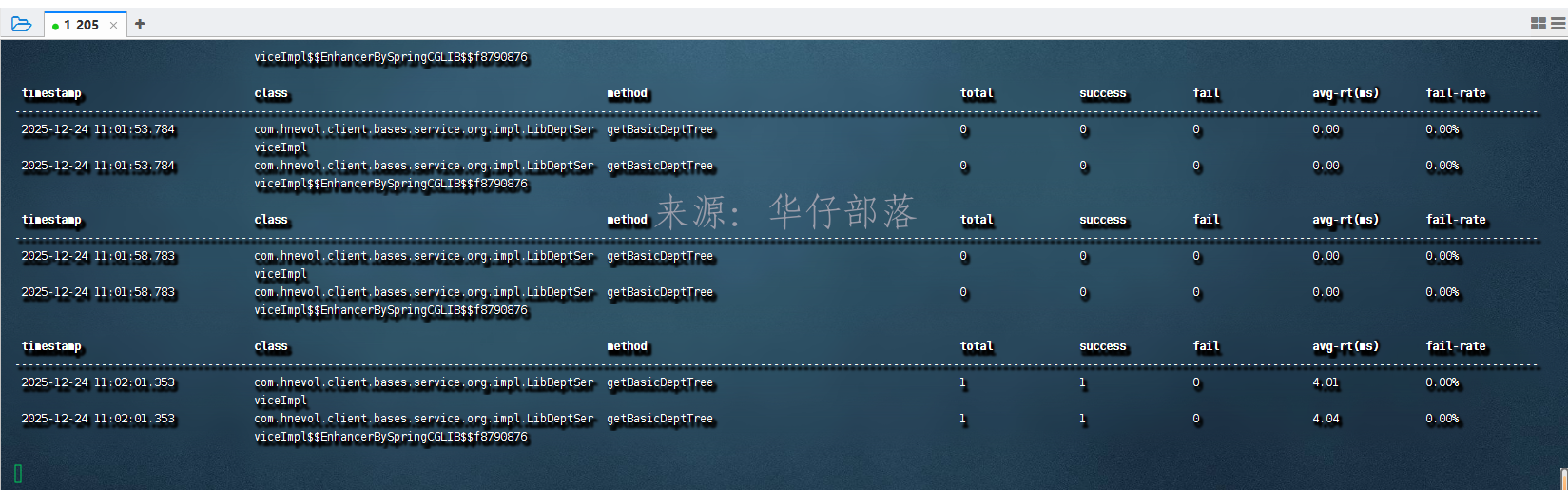 # 每5秒统计一次,监控queryData方法的执行情况 monitor -c 5 com.xxx.Service queryData